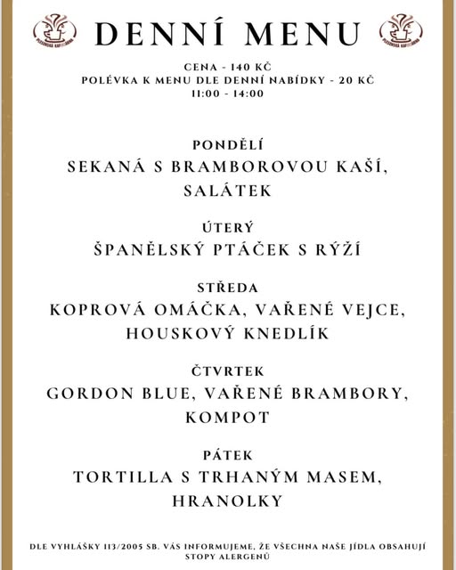 Denni menu 15-19.12 17 prosince,2025 | Žádné komentáře | Denní menu Read More » Denni menu 8-12.12 8 prosince,2025 | Žádné komentáře | Denní menu Denni menu 8-12.12 Read More » Denní menu 1-5.12 1 prosince,2025 | Žádné komentáře | Denní menu Denní menu 1-5.12 Read More » Nejnovější příspěvkyNejnovější komentářeArchivyRubrikyZákladní informace